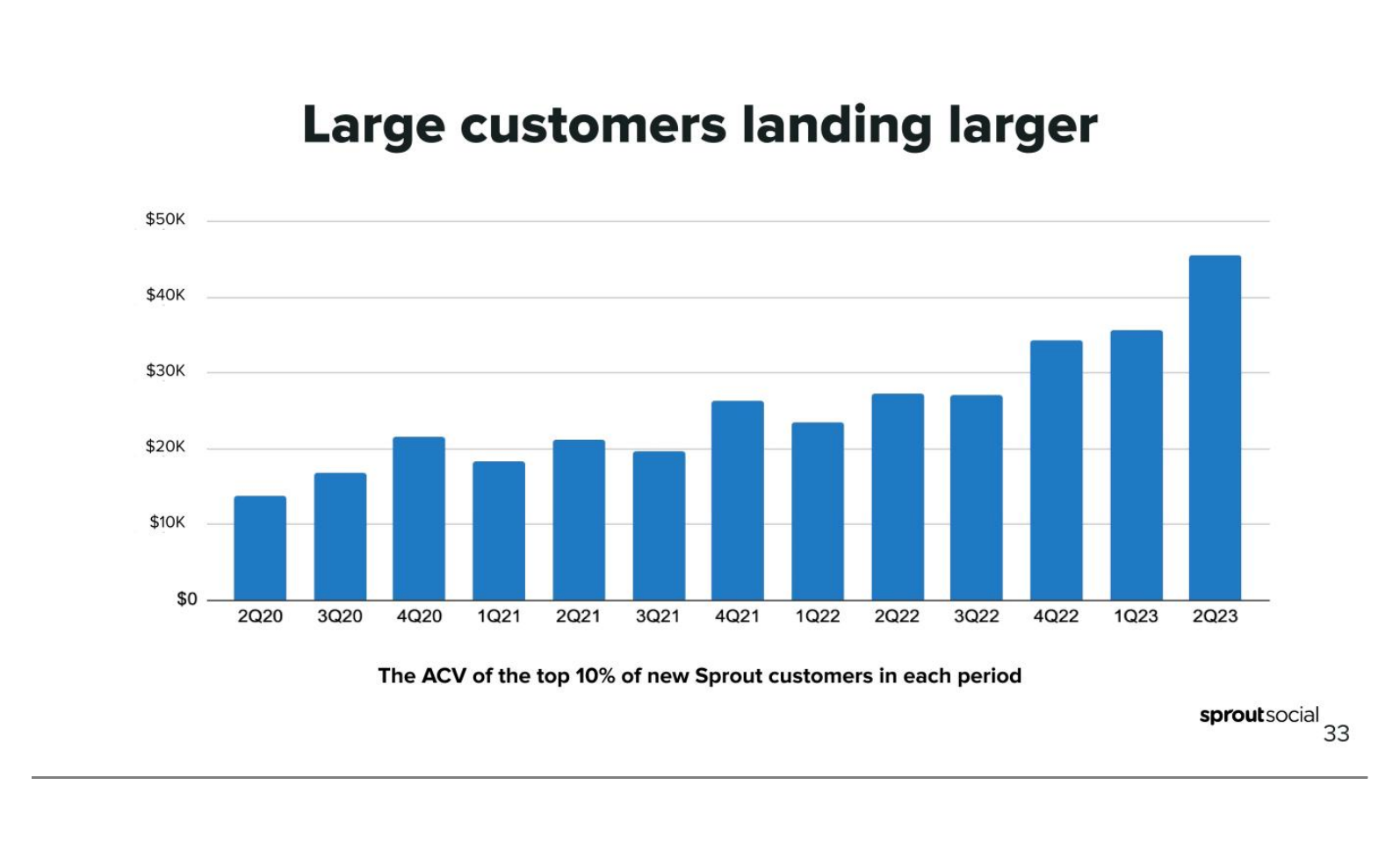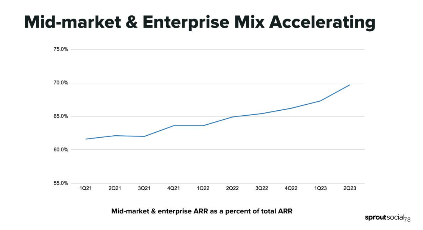 “We believe that you're going to continue to see momentum in these areas. It's a reflection of our move upmarket into the mid-market enterprise. You're also going to see us continue to scale that part of our business. This is a graph of our ARR mix. And you can see the recent acceleration of our mid-market enterprise over the last 3 or 4 quarters and that's been the result of investments we made 3, 4, 5 years ago.” Sprout CFO, September 2023 Investor Day