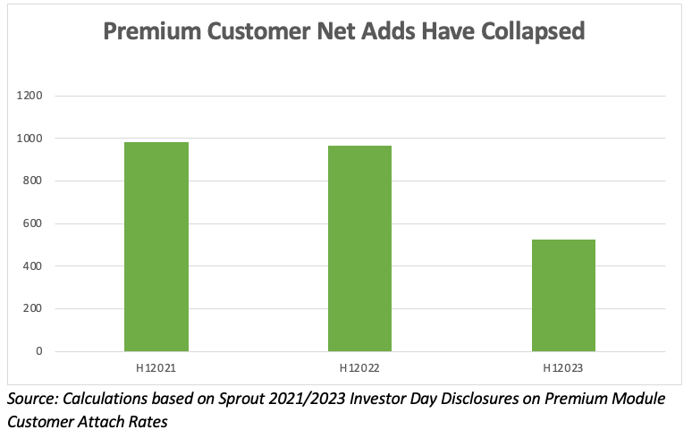 5) Despite these substantial declines, Sprout management highlighted their premium module customer growth as accelerating in 2023 during their Q2 earnings call and subsequent investor day because they somehow didn’t account for the impact of overall customer declines distorting their attach rate metrics.