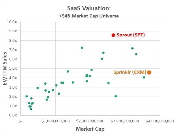 This is pretty much the story of most of SaaS today and if Sprout traded at 3x-4x ARR maybe the risk would be worth seeing how it plays out, but unfortunately it doesn’t.